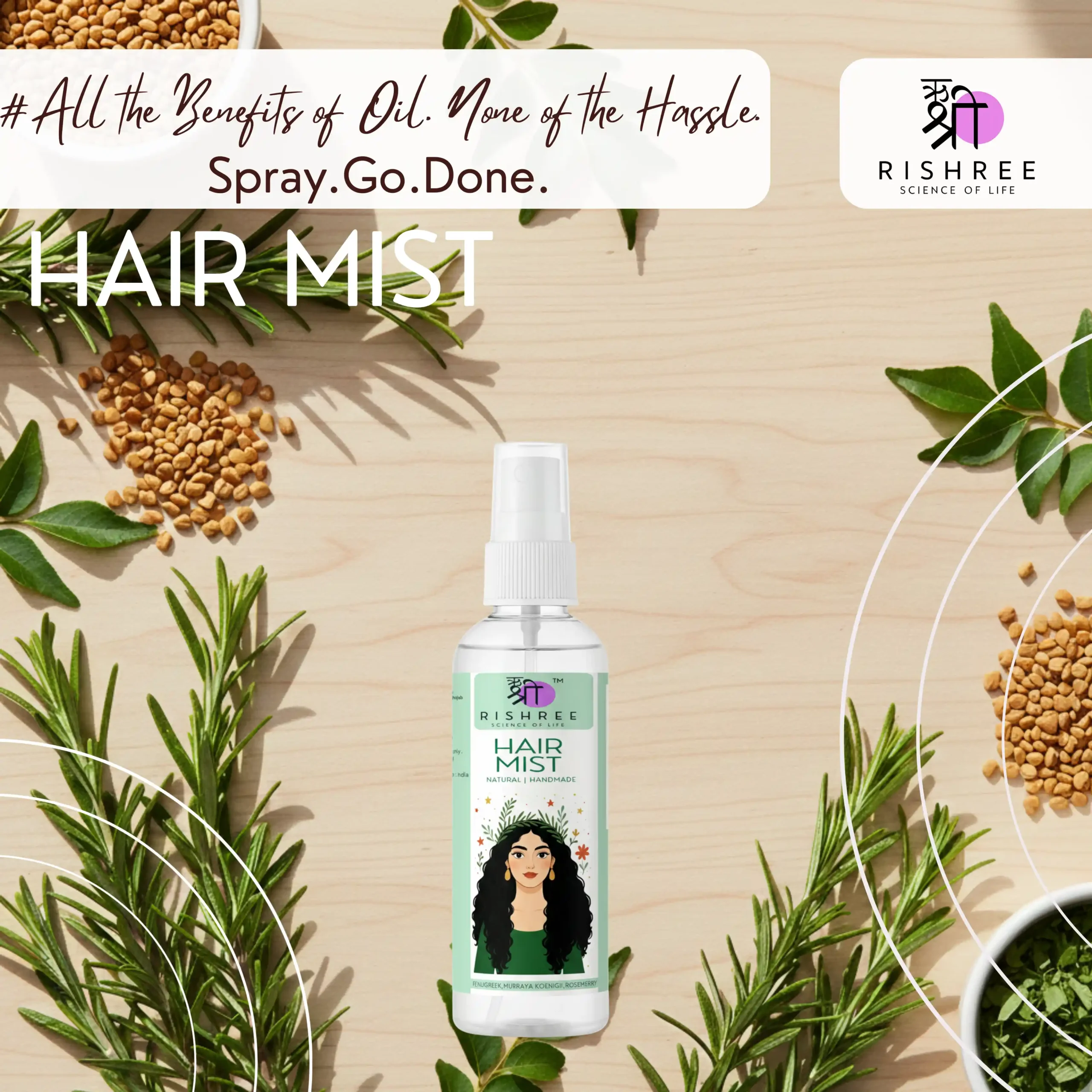 Totally in love with the Rishree hair mist. It smells soft and fresh. A few sprays and my hair feels instantly revived. plus it adds a healthy looking shine without making my hair greasy.
